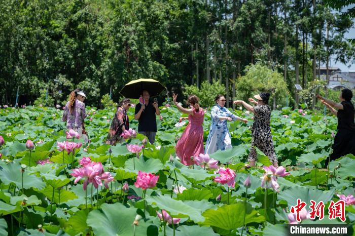 四川成都:千畝荷花盛開引游人